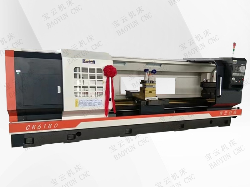 寶云CK6180主軸齒輪箱三檔內無極變速數控車床標準配置:廣州數控GSK-980TDI數控系統,整體落地床身,重型導軌寬度600毫米,11KW普通主電機,11KW國產變頻器,CK6180(Φ630手動四爪卡盤或Φ400三爪卡盤),手動尾座、四工位電動刀架、自動潤滑系統、電動冷卻系統,照明系統、半封閉護罩、德力西電器控制元件,全套技術資料、隨機標準附件及工具。